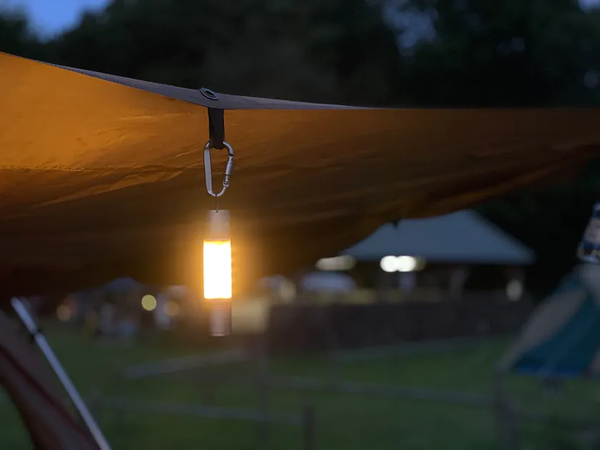 キャンプや釣りなどのアウトドアで強い光で全体を照らしたいときには、温白色モードの「強」で、お酒を楽しみながらまったり雰囲気を楽しみたいときには、電球色モードの「弱」でとシーンに合わせて光の種類を選ぶことができます。