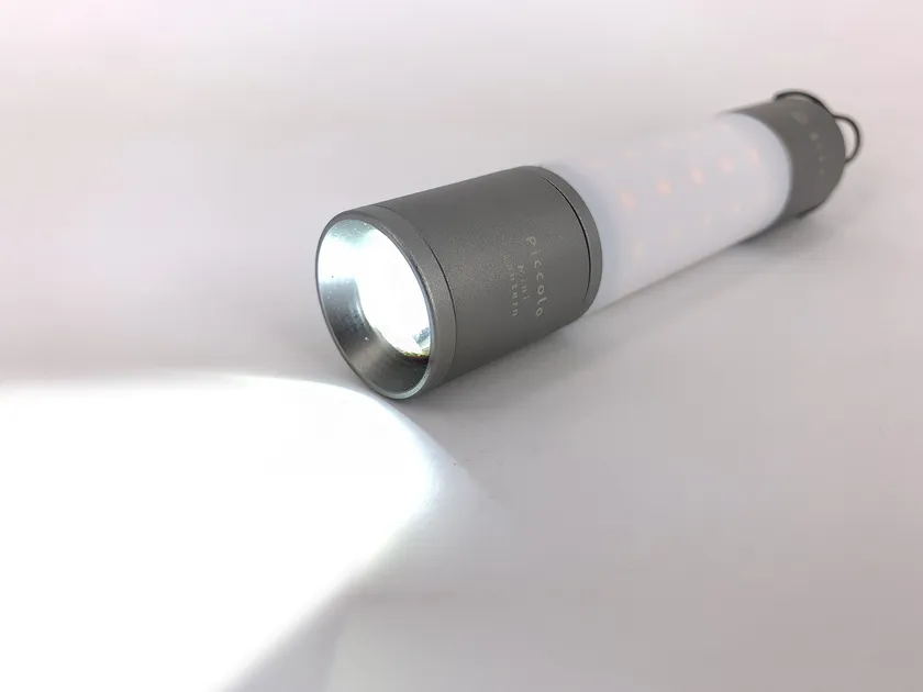 ピッコロランタンは、全長12cm/112gの小さなボディながらも360°全体を照らすランタンモードと、懐中電灯のようにスポットで照らすハンディライトモードの2つの光源を併せ持つ2Way仕様のLEDライトです。また、緊急時にスマホの充電が可能なモバイルバッテリーとしての機能もありますので、緊急時や防災目的としても活用ができます。
