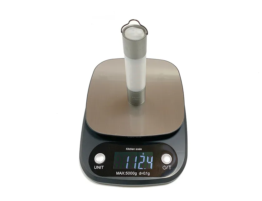 重量は、たったの112gです。単一乾電池(140g)一本分よりもずっと軽いです。大きさも手のひらにすっぽり収まるサイズです。首からネックストラップでぶら下げられるほど小さくて軽いランタンです。