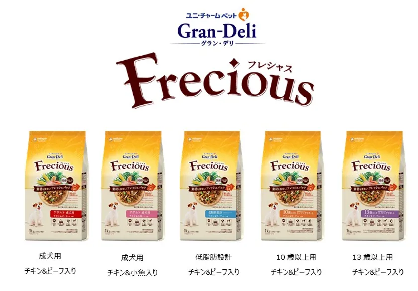 ユニ・チャーム株式会社(代表取締役 社長執行役員 : 高原豪久)は、「美味しさ」「品質」「健康」の全てにこだわった、フリーズドライ製品のささみや野菜が入ったドッグフードの新ブランド『Gran-Deli Frecious(グラン・デリ フレシャス)』を2021年9月6日に全国で新発売します。