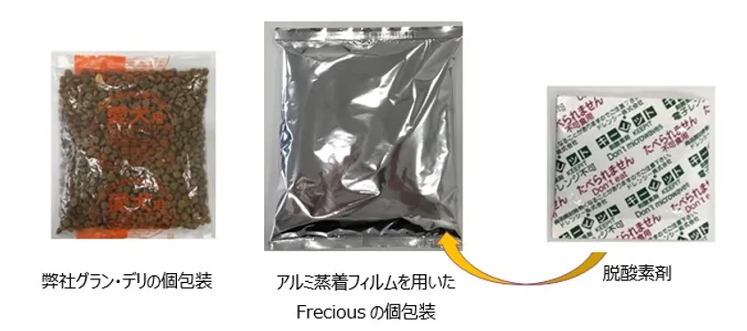 鮮度維持のため“アルミ蒸着フィルム+脱酸素剤”による小分け包装を採用