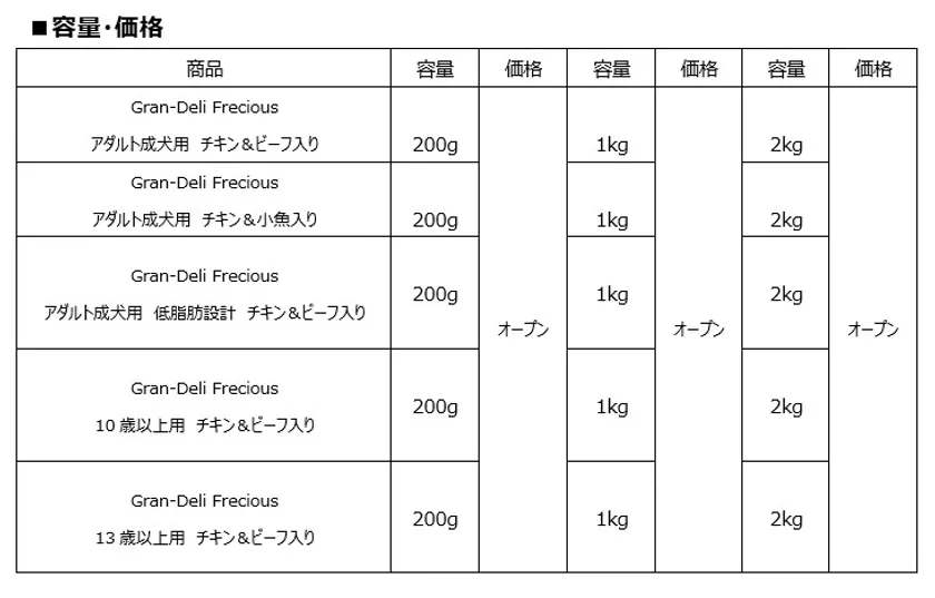 そこでこの度、鶏ささみや、かぼちゃ・ブロッコリー等の野菜にフリーズドライ製法を用いることで、原材料の良さ・栄養をそのままに高い嗜好性を実現するとともに、「おいしさ」「品質」「健康」の全てにこだわったプレミアムフード「Gran-Deli Frecious(グラン・デリ フレシャス)」を2021年9月6日に新発売いたします。