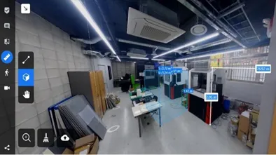 作成した3D-View内にあるメジャー機能を使い、寸法の測量が可能です。運搬経路や設置スペースの確認がバーチャルで可能なため、何度も現場へ足を運ぶ必要がなくなります。また、3D空間上にタグ付けが可能なため、現地の情報を補足するマニュアルや注意事項などを、動画や画像、文章で埋め込むことができます。
