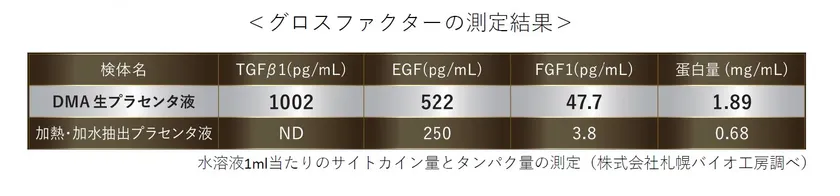 元来プラセンタには、アミノ酸やリン酸、ビタミン・ミネラル類などの美容成分が豊富に含まれています。そして一番当社が着目しているのがEGF、FGF、TGFといった「グロスファクター」と呼ばれる成分です。肌本来の持つ若々しさを保つのにとても重要なカギを握っており、私たちの体内にもともと存在するものですが、年齢とともに減少してしまうと言われています。