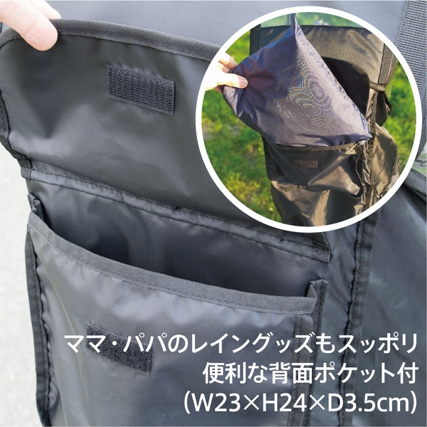 ママ・パパのレイングッズもスッポリ! 便利な背面ポケット付き
