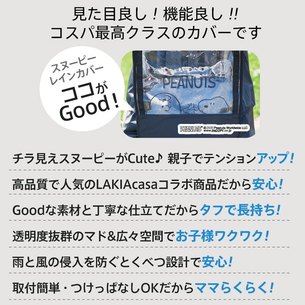 「チャイルドシートレインカバー スヌーピー(リア用・フロント用)LAKIA casa」の主な特徴