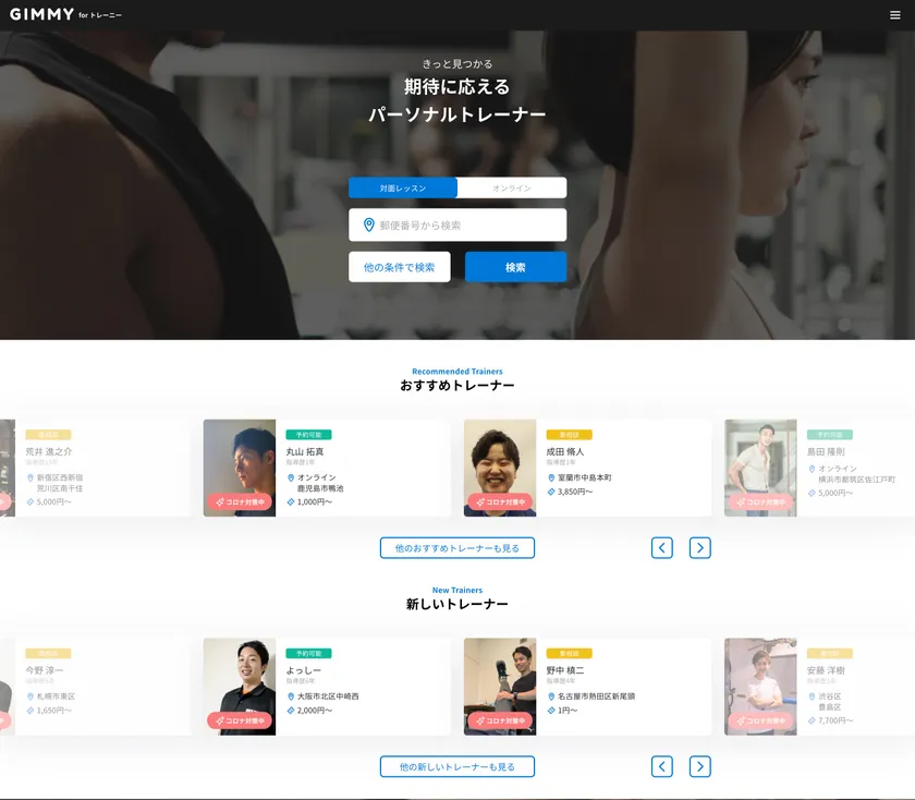 GIMMY(ジミー)は簡単にパーソナルトレーナーやスポーツコーチが見つけられるプラットフォームです。また、フリーランスのパーソナルトレーナーやスポーツコーチが活動を行う際に必要な、集客から予約管理、顧客管理や決済管理、その他必要なオペレーションのDX化を促進し個人をエンパワーメントするサービスです。