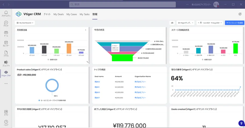 ・Microsoft Teams連携(チャンネル内にCRMダッシュボード表示)