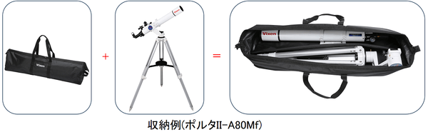 ビクセンのロングセラー入門機「ポルタII A80Mf」をはじめ、モバイルポルタやStarSense Explorerシリーズなどを一式収納し、手軽に運搬できる便利な収納ケースです。