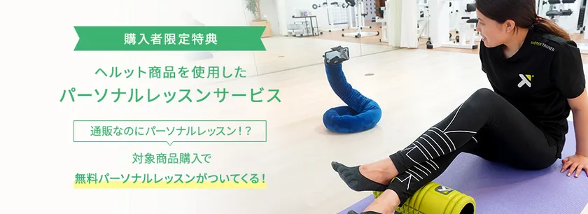 ウエルアップオンラインストア「ヘルット」にて、対象商品をご購入いただいた方に、10分間のオンラインパーソナルレッスンを無料で提供します。レッスンは、様々なヘルスケア事業を展開する運営会社の株式会社ウエルアップ専属スタッフ(健康に関する有資格者)が担当。安心してご利用いただけます。