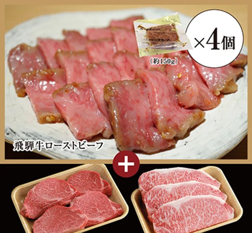 飛騨牛ローストビーフ 約600g+飛騨牛サーロインステーキ 3枚(約200g/1枚)+飛騨牛ヒレステーキ 4枚(約150g/1枚)
