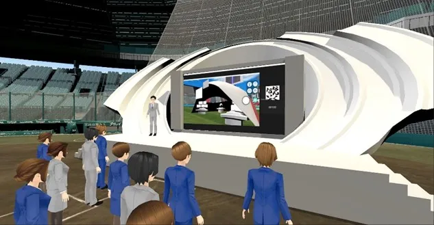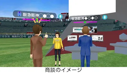 前回と同様に、出展者と来場者は、アバターを通じて双方向の音声通話をすることが可能で、実際の阪神甲子園球場のグラウンドで商談を行っているような臨場感を体感することができます。