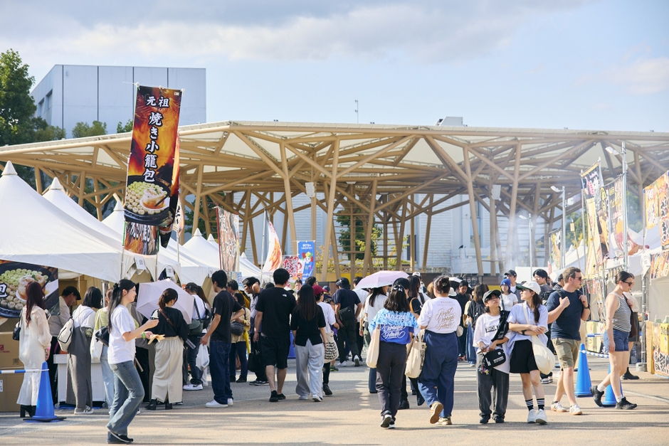 大屋根広場には巨大な「角ハイボールBAR」が登場し、会場中央には「獺祭」や「大和屋酒舗」による日本酒ブースも。県内外の蔵元が手がける銘酒を味わいながら、来場者はカップを手に思い思いの料理を楽しみ、笑顔が行き交うひとときとなりました。