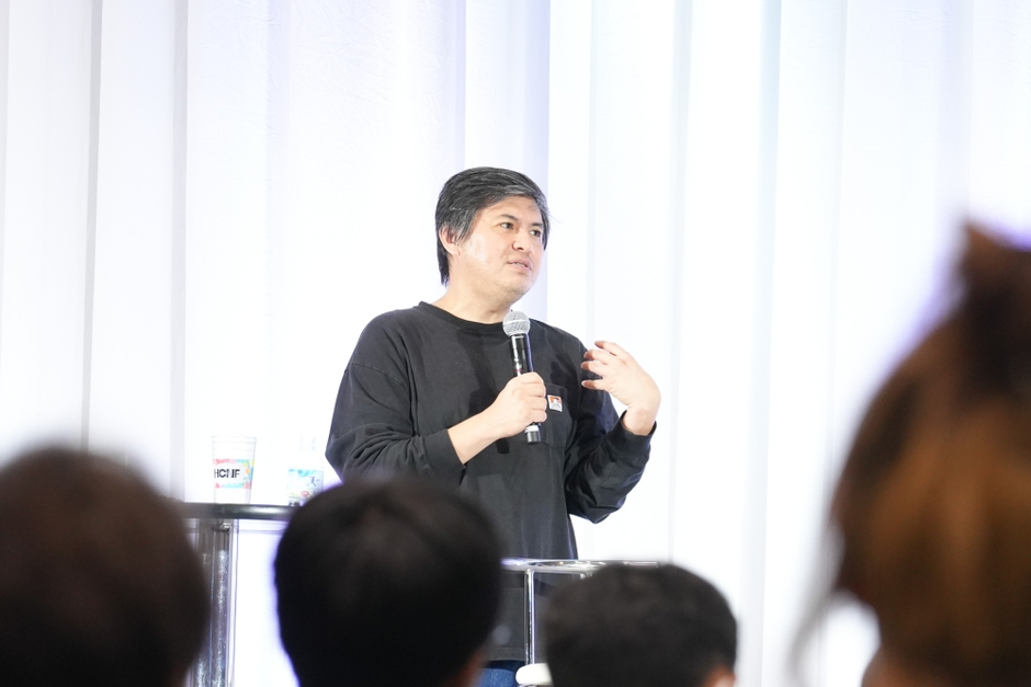 続くステージでは、映画製作や芸人などマルチに活躍する西野亮廣さんが登壇。「お金」「モチベーション」「集客」を軸に、リアルな体験を交えながら語る内容に多くの参加者がペンを走らせていました。映像ディレクターの高橋弘樹さん、テレビプロデューサーの西田二郎さんも加わり、エンターテインメントの未来をめぐる熱のこもった議論が続きました。