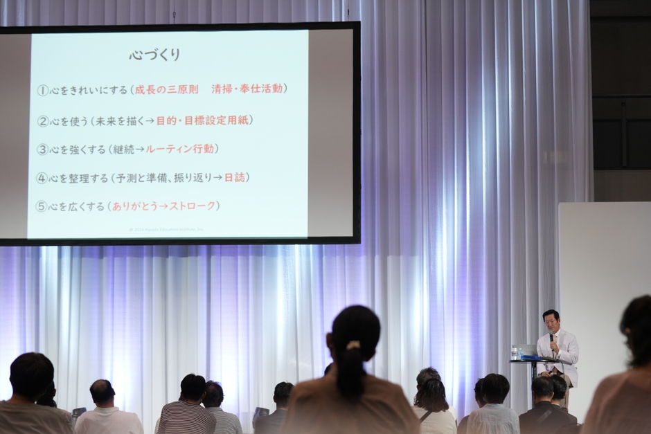 1日目の最後に登壇したのは原田隆史さん。教育現場におけるこれまでの壮絶な経験等、原田式メソッドが生み出された背景を紹介し会場を感動に包みました。
