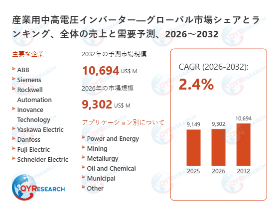 本記事は、QY Research発行のレポート「産業用中高電圧インバーター―グローバル市場シェアとランキング、全体の売上と需要予測、2026~2032」に基づき、市場動向および競合分析の概要を解説します。