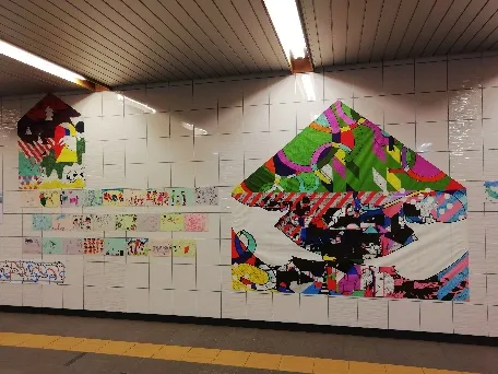 ▲お客さまとアーティスト(上:坂東志保、下:酒井沙織)のコラボレーション作品の展示(中之島駅2020年)