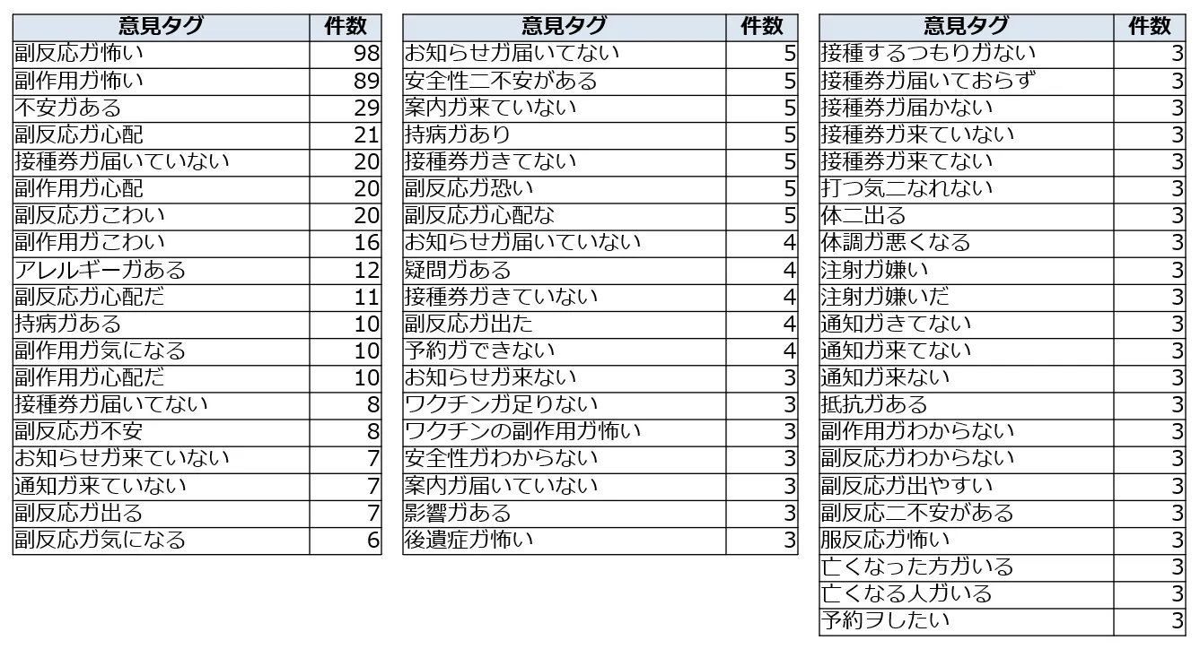 ※意見タグとは意見タグAIで生成される意見タグ「〇〇ガ□□」のこと。