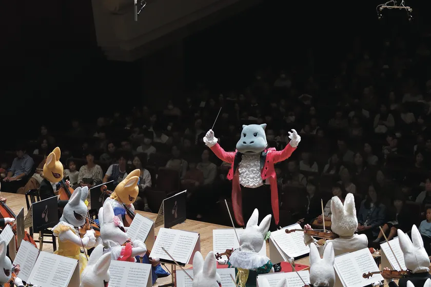「弦うさぎ」(うさぎの弦楽四重奏)「サキソフォックス」(キツネのサックス四重奏)といった動物の仲間たちと行う、親子のためのコンサート「音楽の絵本」は、全国各地のホールで話題となり、海外公演も含め年間約150を数えます。2011年にはオーケストラ「ズーラシアンフィルハーモニー管弦楽団」を結成。これまでのコンサートから更に一歩踏み出し、慣れ親しんだ音楽をより交響的に紡ぐ「シンフォニック童謡」をテーマに展開。子どもたちのクラシック音楽への興味を一層高めています。