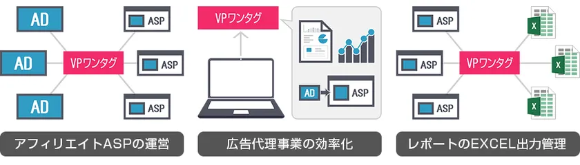 アフィリエイト広告の運用代行ならびにWEB全般の広告支援を展開する株式会社バリュー・パートナーズ(本社:東京都中央区、代表取締役:色川 正広)は、2021年8月19日(木)に、独自特許広告配信技術 ポイントリターゲティングとITP2.3に対応した複数のアフィリエイトサービス(以下 ASP)を簡単に追加導入でき、複数ASPの実績を一括して纏めたレポートを作成できるVPワンタグ(特許出願中)をリリースしました。