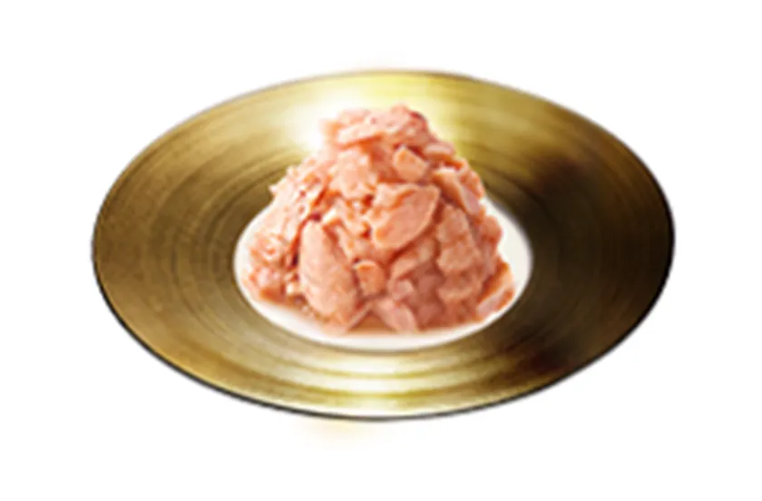 ・国産まぐろ100%のフレークを贅沢に使用し、ほたて風味のゼリーでやわらかく仕上げました。