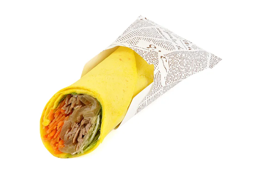 北海道名物のジンギスカンをサラダ仕立てにしたトルティーヤです。ラム肉と玉ねぎを醤油ベースのタレで味付けし、人参ナムルを合わせたクセになる味わいです。ラム好きにはたまらない一品です!