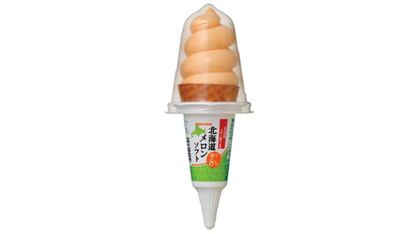北海道産の赤肉メロン果汁と北海道豊富町産の牛乳、生クリームを使用したアイスをワッフルコーンと一緒に味わえる、プレミアムな一品です。