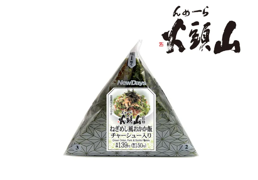 北海道の旭川に本店がある、らーめん山頭火のサイドメニュー「ねぎめし」をイメージしたねぎめし風おにぎりです。たっぷりのねぎとチャーシューをおかかご飯で包んだ、旨味溢れる味わいです。