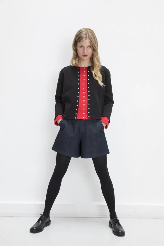 アニエスべーのアイコニックアイテム、カーディガンプレッションなどのタイムレスなウェアと新作バッグとのコーディネートがおすすめです。