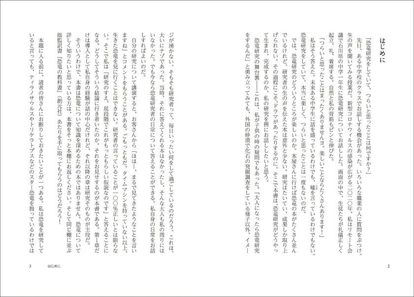 「はじめに」より。恐竜研究をしていて、つらいと思ったことは何ですか?