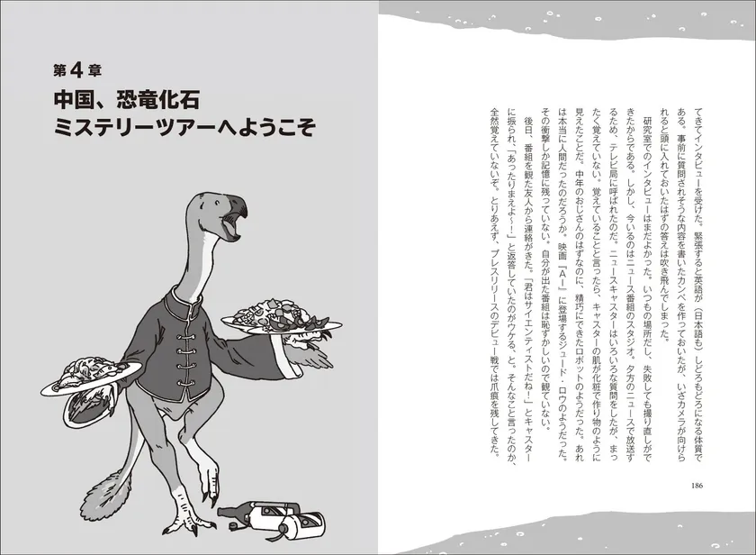 「第4章 中国、恐竜化石ミステリーツアーへようこそ」より。中国のモーレツ恐竜学者、ジュンチャン・ルー博士と卵化石の調査に奔走する