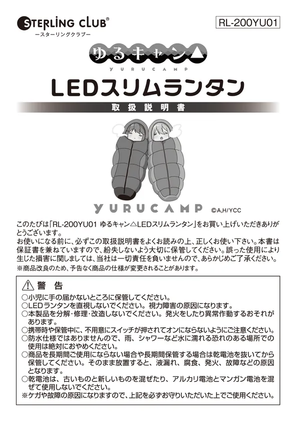 株式会社スターリング(本社:大阪府大阪市、代表取締役:吉井 啓人)は、人気アニメ『ゆるキャン△』とコラボレーションした「ゆるキャン△LEDスリムランタン」を2021年8月27日から販売開始いたします。