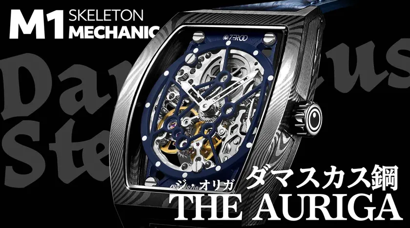 ゼロタイムから新しい機械式手巻きスケルトンウォッチが誕生ました。ZEROO M1D THE AURIGAダマスカス鋼メカニカルスケルトンは、現在、クラウドファンディグのMakuakeで9月29日まで先行予約を開始しました。