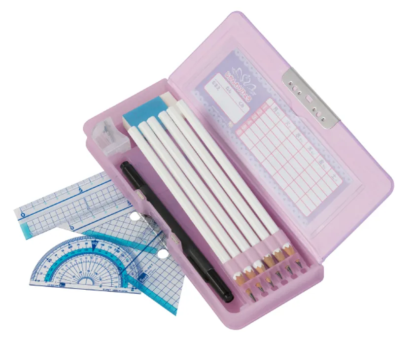コンパクトなサイズ感ながら、小学生に必要なアイテム(鉛筆6本・消しゴム・油性名前ペン・15cm定規・分度器・三角定規)がきちんと入るので、省スペースでも使いやすさを実現しました。取り外して使える便利な鉛筆削器や時間割表など十分な機能も備えています。