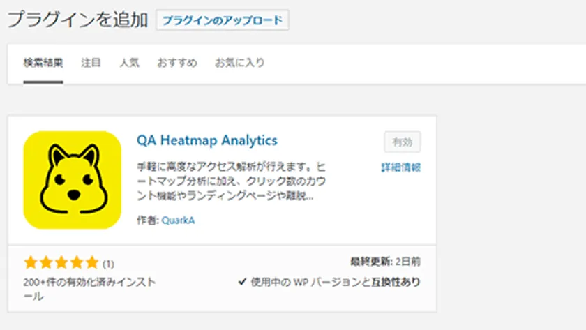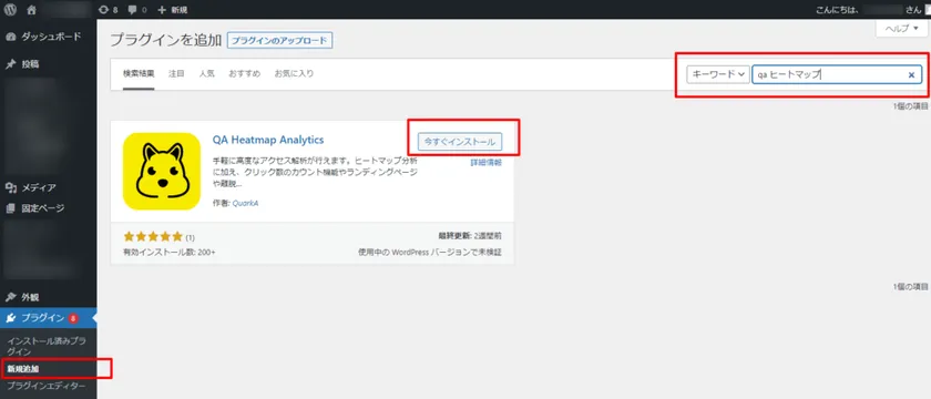 「QA Heatmap Analytics」WordPress公式プラグインをインストールして有効化
