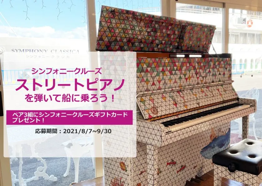 シンフォニークルーズを運営する株式会社シーライン東京(本社:東京都港区海岸、代表取締役社長:斉藤 博章)は、2021年8月7日(土)~9月30日(木)までシンフォニー乗り場で誰でも自由にピアノが弾けるストリートピアノを設置いたします。
