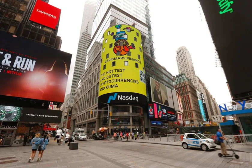 アート、SNS、ゲーム、才能、NFT、blockchainのハブを目指し、NFT marketplace、GameFi、DeFiを手掛けるcaribmars.financeが、NASDAQのロゴでも有名なニューヨークタイムズスクエアのビルボード広告に2021年8月17日に掲載されました。今後caribmars.financeはサービスのローンチに向けてプロモーション活動を行っていきます。
