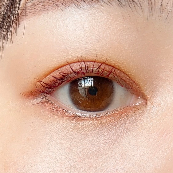 まつ毛には透明感のあるやさしい発色のレッドを。あたたかみのあるウォームカラーのアイシャドーと相性が良く、目元に存在感と程良い抜け感を与えてくれます。
