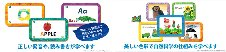 本アプリは、「はらぺこあおむし」の世界観を通じて楽しく英語に触れながら、国際基準の学習メソッドに基づく正しい発音や読み書きを学習することが出来ます。さらに数字の概念や自然科学について学べるアニメやゲーム、自由な表現を形にするぬりえやつみき遊び、空間認識力や記憶力を鍛えるパズルや神経衰弱など、さまざまな知育コンテンツを通じてお子さまの豊かな感性や能力を養います。