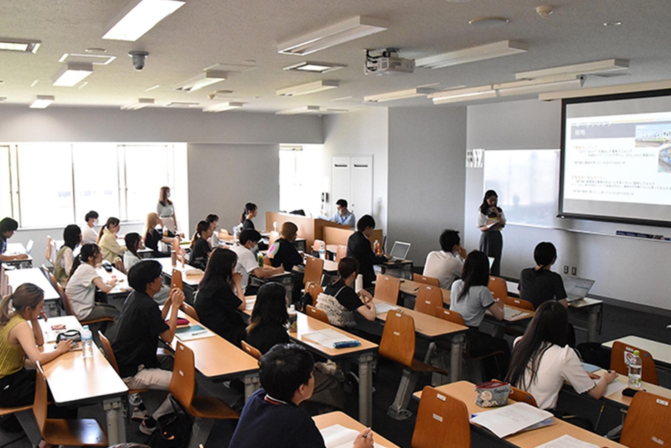 多種多様な企画案がそろい、選ばれた7案をプレゼンテーションする発表会を7月4日に開催されました。ひとり3分の持ち時間で順番にスライドを使って説明し、名古屋鉄道の方からの質問に対応しました。緊張しつつも、準備と練習の成果が発揮されました。これから実現に向けた検討が進められるため詳しい発表内容は書けませんが、瀬戸線沿線の町の魅力を引き出す案や、瀬戸線の車両でこれまでにないイベントを実施する案など、とても興味深いものばかりでした。深掘りしたデータを丁寧に整理して論理的に具体的な企画案におとしこんだものが多く、最後の講評では学生たちの発想力や分析力が高く評価されました。