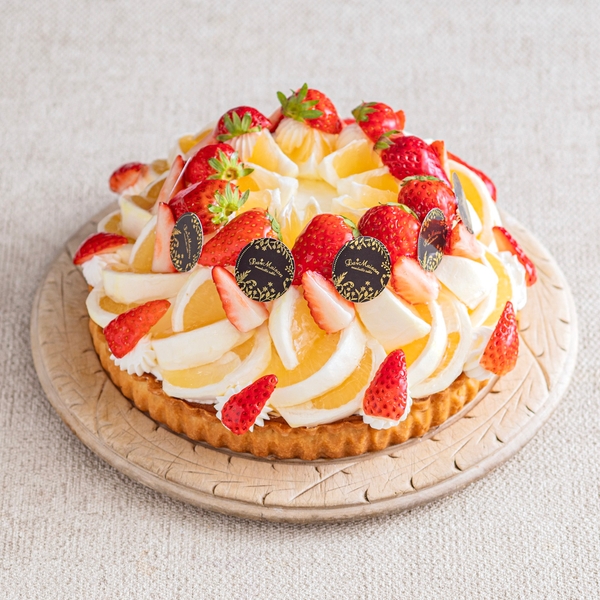 香ばしいアーモンドタルトにいちごのクリームと日向夏ギリシャヨーグルトクリームを重ねました。爽やかな日向夏の甘さと甘酸っぱいいちごをお楽しみいただけるタルトです。