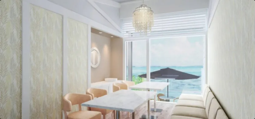 新エリアではパンケーキだけでなく「窯焼きピザ」や「オリジナルパスタ」などお食事系のメニューも多数取り揃え、現在建築中の店舗では「プライベートテラス付の個室」や「プライベートビーチ付のテラス席」など豪華設備を取り揃えて皆様を更なる非日常を感じていただけるリゾート空間に誘います。