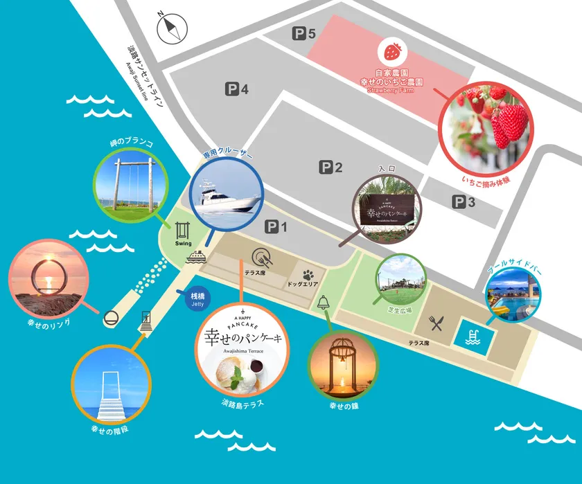 「幸せのパンケーキ 淡路島リゾート」では他にも大人からお子様まで楽しめる【海沿い子供広場】やイベントが開催される【プールサイドバー】など施設が盛りだくさんです。