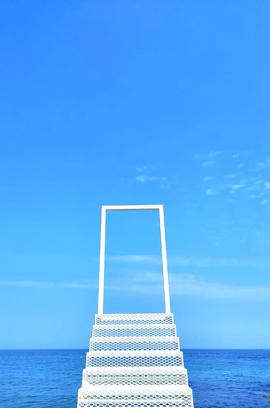 青い海と空の間へ続く「幸せの階段」
