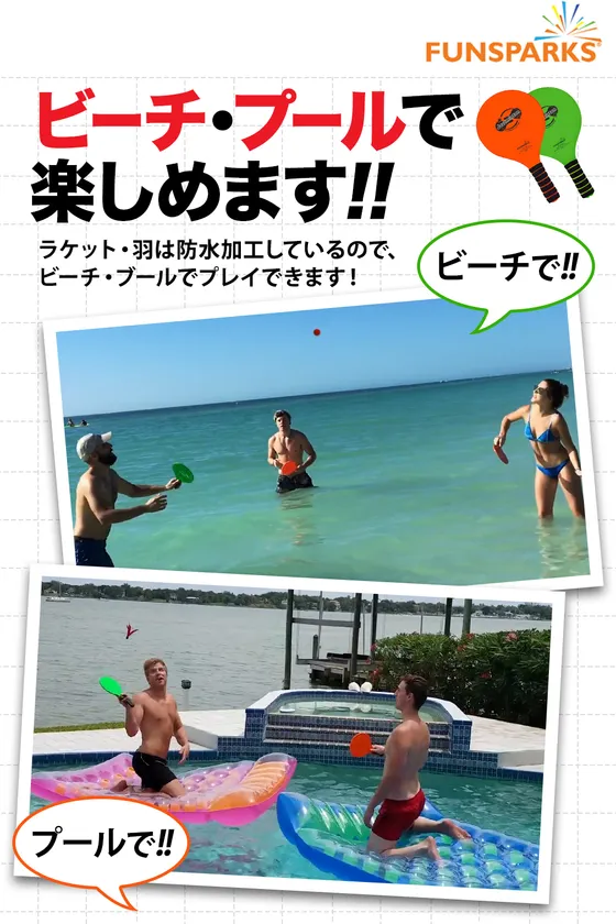 ・特徴5:ラケットと羽は防水加工しており、ビーチ・プールでも遊べる!