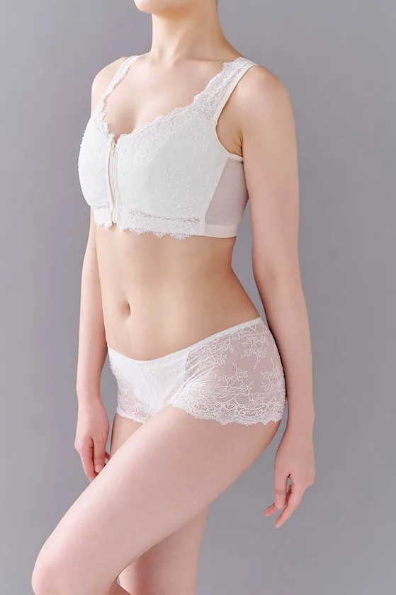 「患者様や利用者様にバストが当たってしまう」「和装時、帯の上にバストが乗って綺麗な着姿にならない」「太ってみえる」「ショーツのラインが気になる」「オシャレなセットアップがない」など、大きなバストで悩まれている医療・介護従事者や和装女性の声を中心に商品開発は始まりました。