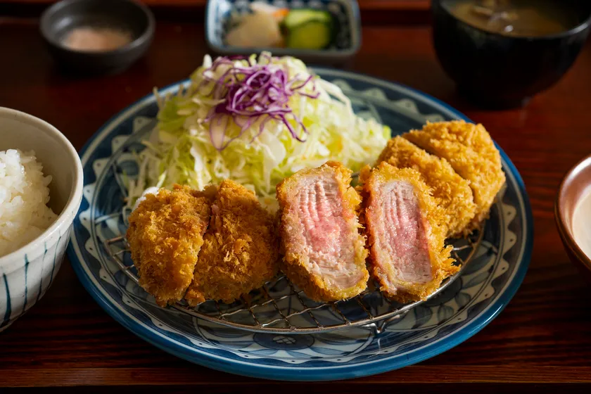 希少価値の高い黒豚を低温で旨みを逃さず、じっくりと揚げております。ジューシーな肉質、衣のサクサク感。そして、コシヒカリ、特製ソースと香り高い金胡麻など、たくさんのこだわりを堪能いただけます。