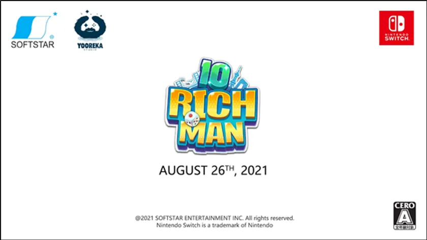 ゲームパブリッシャーのYooreka Studioは、2021年8月26日(木)より「Nintendo e-shop」にて、当社の人気ボードゲーム『リッチマンシリーズ(原題:大富翁)』の最新作『リッチマン10』を1,800円(税込)にて販売を開始します。販売開始から2週間限定、15%オフ1,500円(税込)セールも開催いたします!本作はデベロッパーSoftstarにより開発され、アジアで人気を博しているボードゲームで、累計70万本のセールスを記録するなど、多くのユーザーから高い評価を頂いています。今回は日本語ボイスの導入などを盛り込み、新たなプラットフォームとしてNintendo Switchにて展開いたします。
