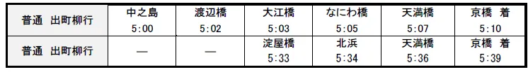 淀屋橋駅および中之島駅の初発列車を変更します。