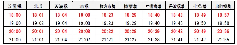 ■全車両座席指定「ライナー」(淀屋橋発 ⇒ 出町柳行)の発車時刻 ※赤字は増発